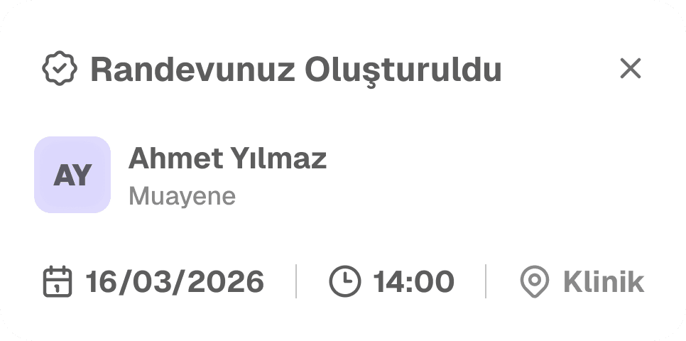 Kliniklerin randevu planlama, hasta yönetimi ve operasyon süreçlerini tek bir akıllı sistemde birleştirir. Yapay zekâ destekli altyapı sayesinde süreçler daha hızlı, daha düzenli ve daha verimli hale gelir.