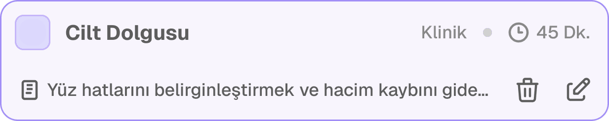 Sunulan tüm hizmetleri süre, lokasyon ve planlama kuralları ile birlikte tanımlayın.