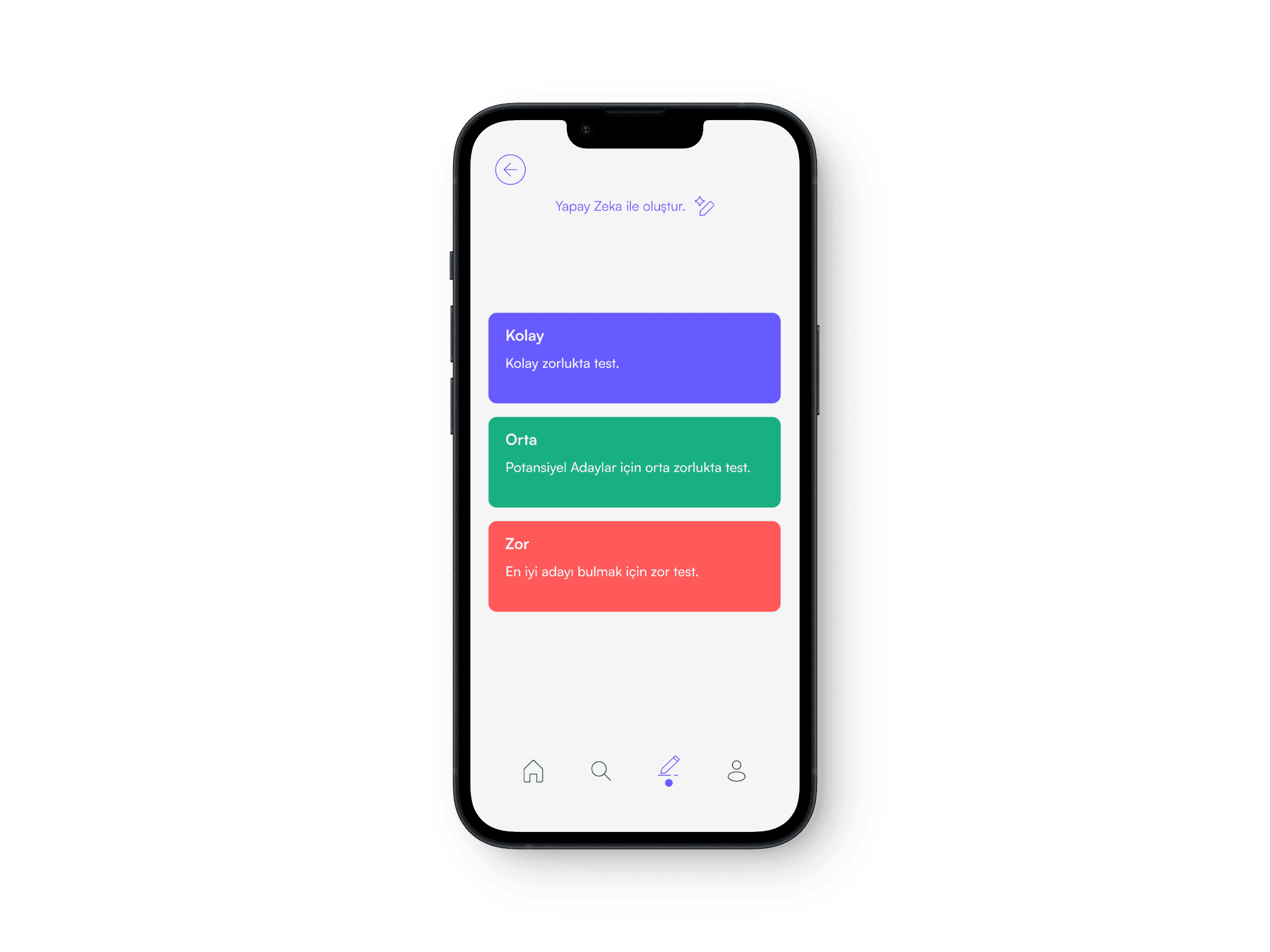 Select the difficulty level for the test you want to create, and let artificial intelligence generate it for you.