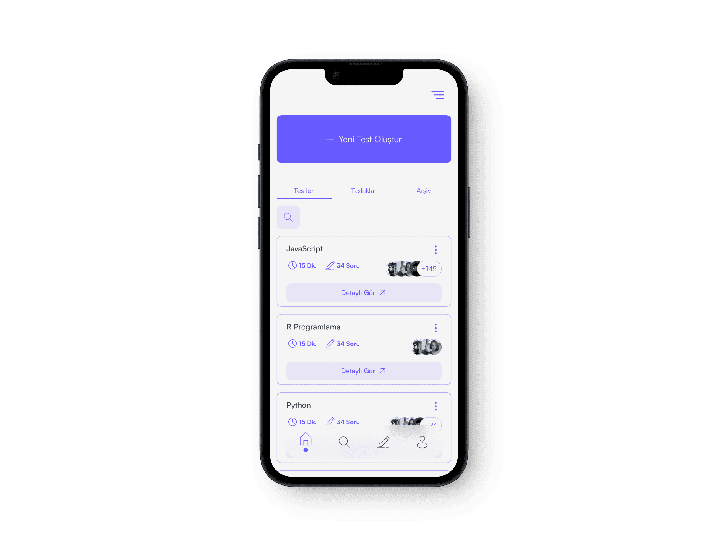 View your tests, archive them, or save them as drafts.